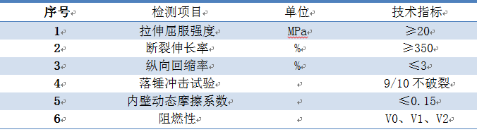 3、我司生產(chǎn)的HDPE阻燃硅芯管通過(guò)配方的優(yōu)化和工藝的改進(jìn),其力學(xué)性能仍然可以達(dá)到HDPE硅芯管的 國(guó)家標(biāo)準(zhǔn)要求;