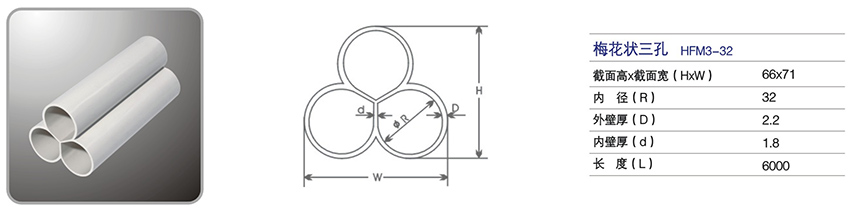 通信用PVC三孔梅花管采用優質耐老化改良PVC工程塑料一次擠出,抗壓強度高,獨特的多孔一體力學支撐結構,顯著提高管材的抗壓能力,使管材比普通結構塑料管材抗壓性能高10~100倍,正常情況無須做基礎或包封,防沉降,能代替鋼管安全穿越馬路,阻燃(離火即熄性好),抗腐蝕,耐老化,埋地使用壽命長達50年以上。