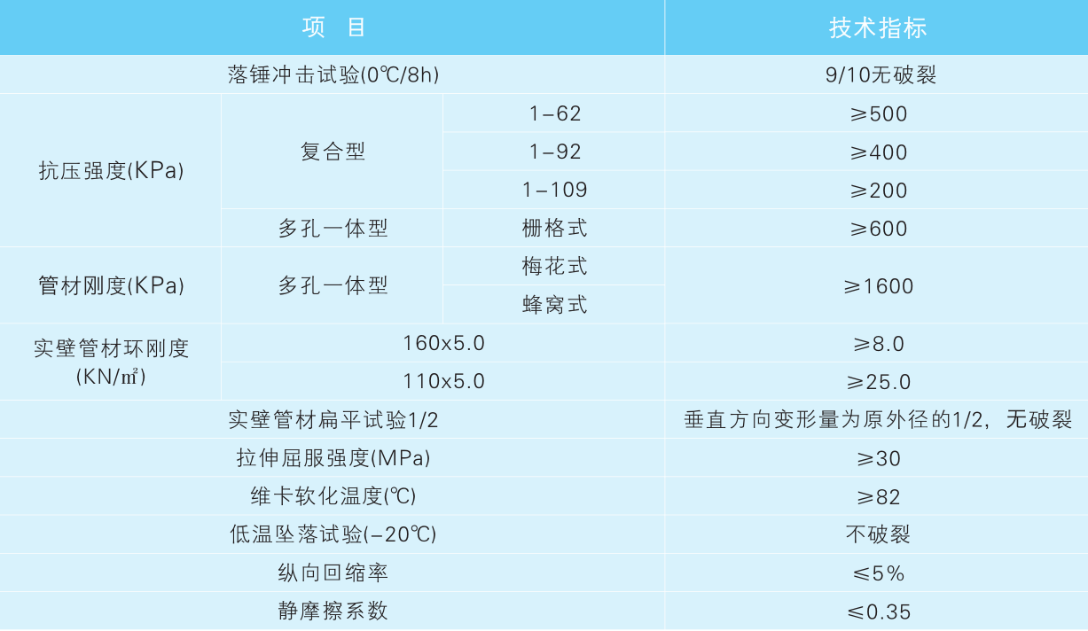 l 耐酸、堿,耐腐蝕,完全解決了金屬鋼管易生銹腐蝕的缺點,使用壽命可到50年以上。